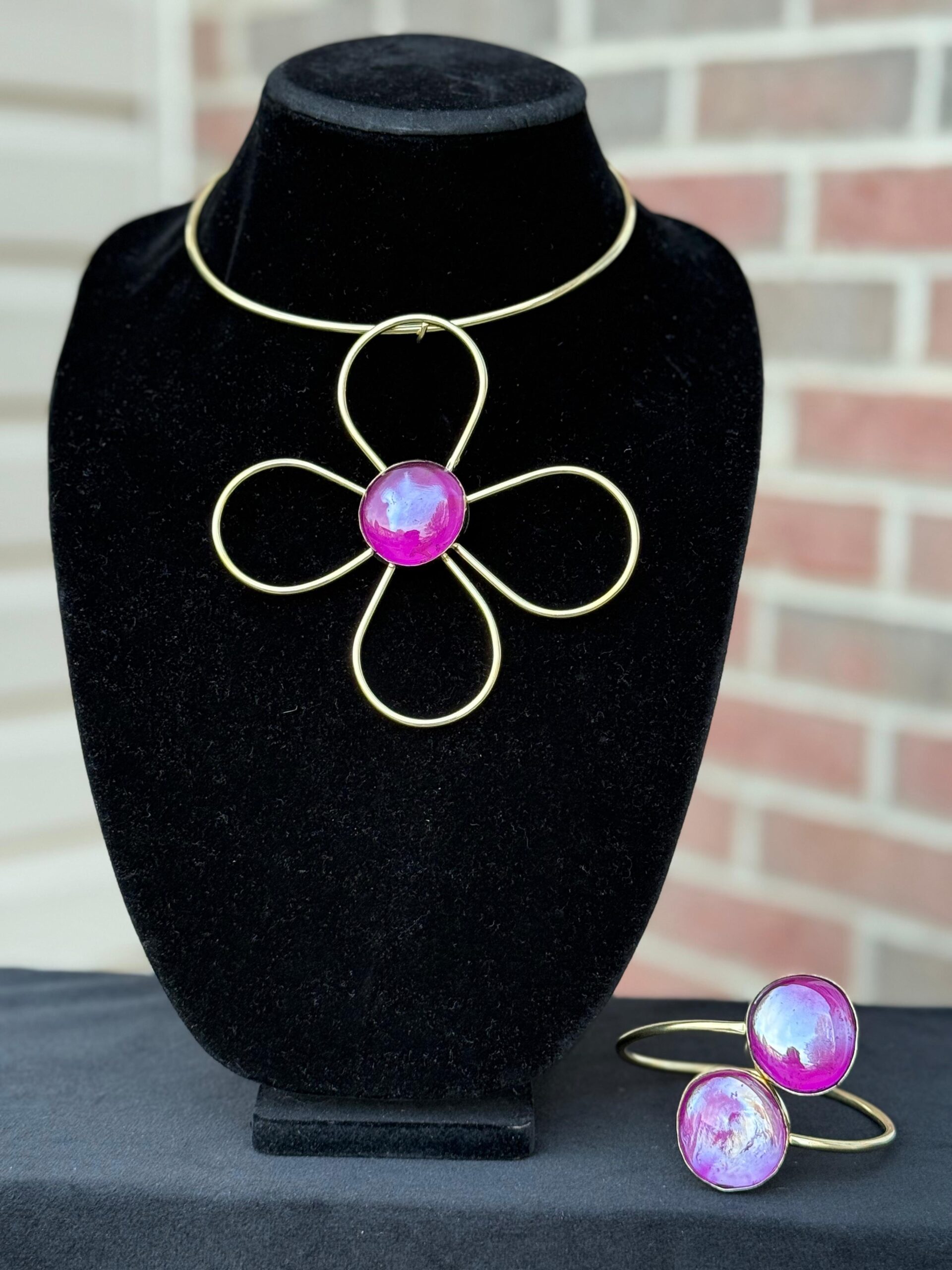 The choker sits powerfully along the neckline, while the matching arm cuff wraps gracefully around the arm, creating a harmonious balance of strength and elegance. Together, they form a striking set that commands attention while remaining refined and timeless.