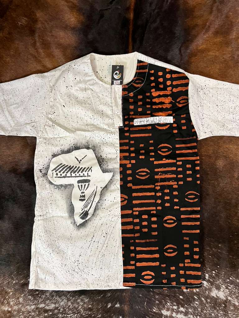 The ABÔF Dual Heritage Shirt blends hand-drawn storytelling with rich mudcloth-inspired patterns, creating a unique statement piece rooted in African culture. Designed for the man who stands out effortlessly.