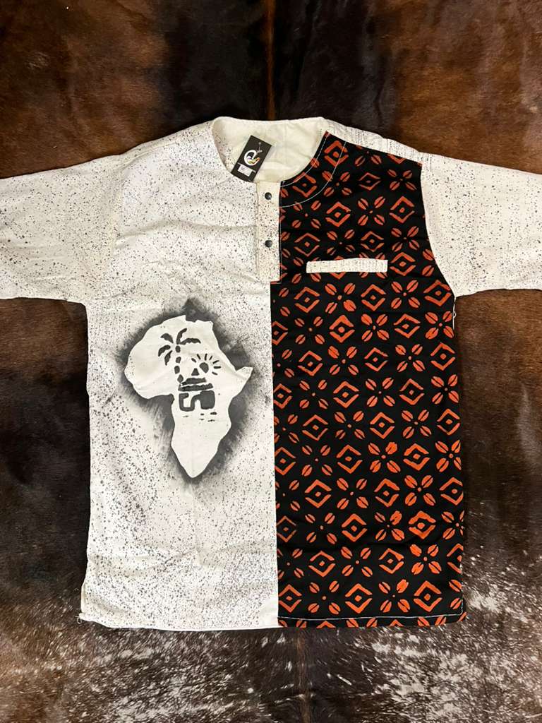 The ABÔF Dual Heritage Shirt blends hand-drawn storytelling with rich mudcloth-inspired patterns, creating a unique statement piece rooted in African culture. Designed for the man who stands out effortlessly.
