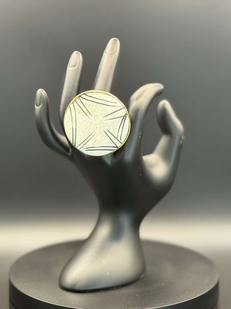 A sophisticated fusion of African heritage and modern elegance, the ABOF Ivory Line B&B Ring is handcrafted from brass, featuring a bold circular face engraved with geometric linework. Its clean, radiant design creates a striking centerpiece that commands attention.