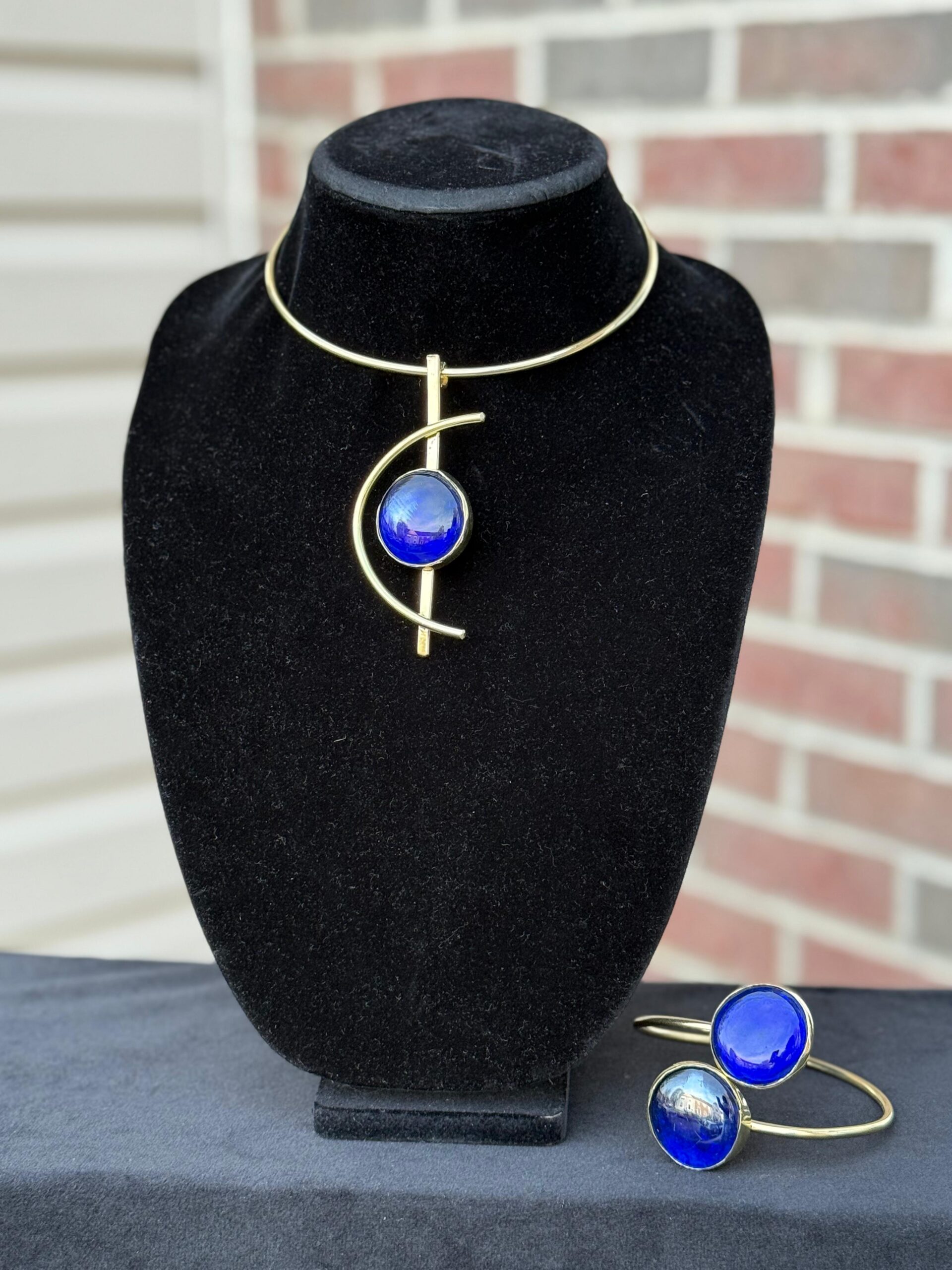 The choker sits powerfully along the neckline, while the matching arm cuff wraps gracefully around the arm, creating a harmonious balance of strength and elegance. Together, they form a striking set that commands attention while remaining refined and timeless.