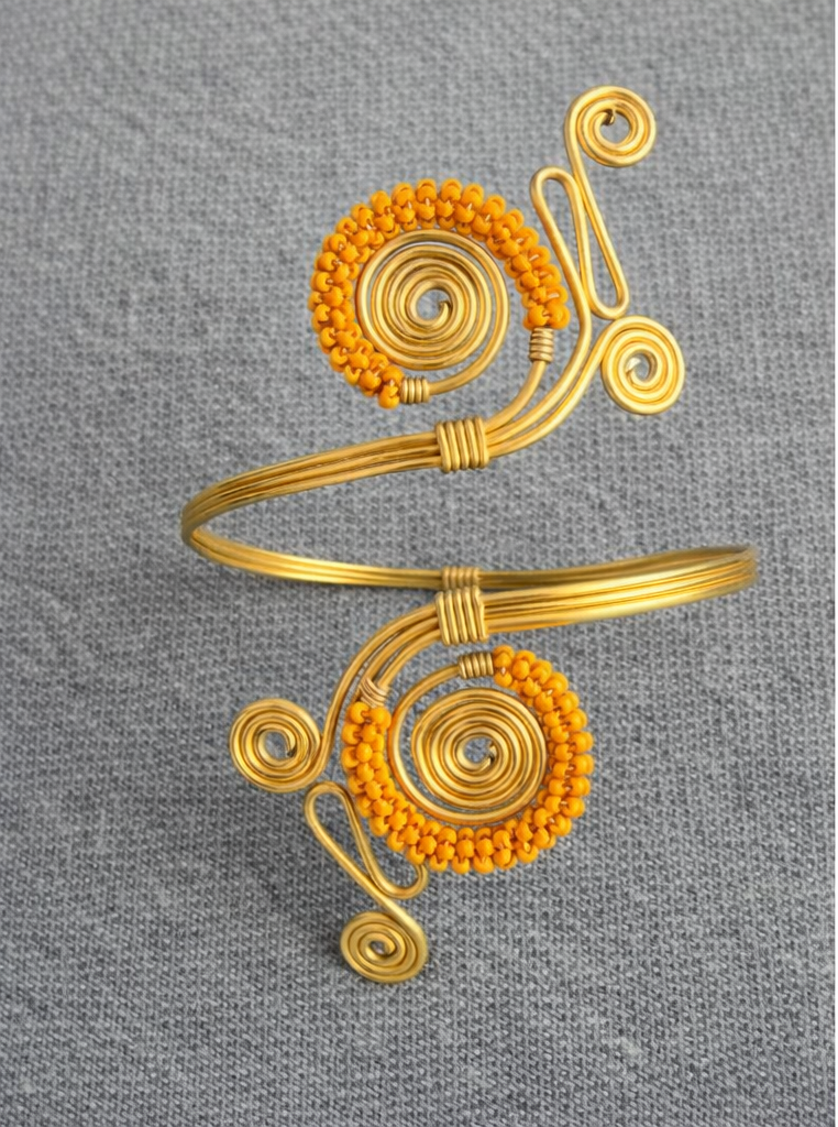A striking statement of African elegance and craftsmanship, the ABOF Orange Beaded Spiral Arm Cuff is handcrafted from radiant brass and shaped into an elegant sculptural design. Bold yet refined, this piece wraps the arm with strength and grace, reflecting the beauty and symbolism of traditional African adornment.