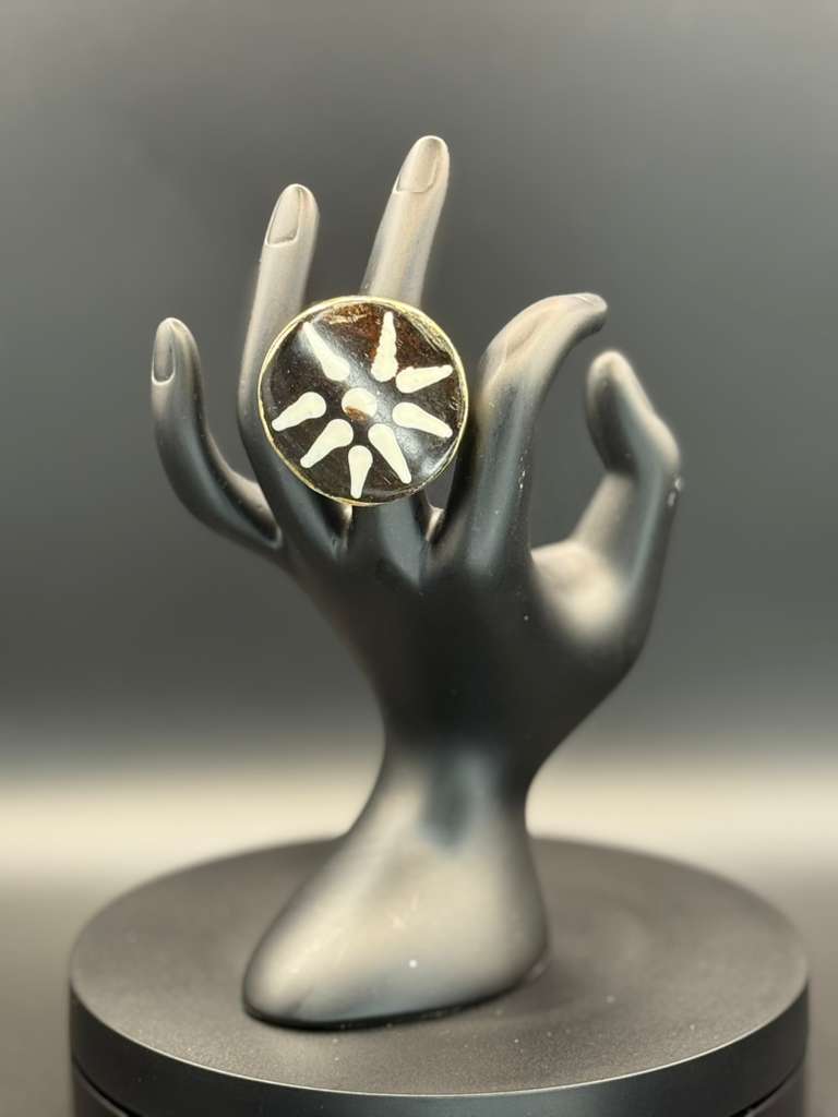 A sophisticated fusion of African heritage and modern elegance, the ABOF Sunburst B&B Ring is handcrafted from brass and natural bone, featuring a circular face with a sunburst motif. Symbolizing energy and vitality, this piece brings warmth and bold character to your look.