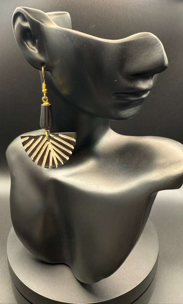 Handcrafted with brass, cowrie shells, horn, and natural bones, the Black & Ivory Sunburst Nefertiti Fan Earring reflects the bold Afro-chic identity of ABOF Brand. Each pair is unique, blending natural African materials with powerful design for women who love statement pieces rooted in culture.