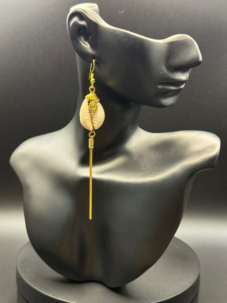Handcrafted with brass, cowrie shells, horn, and natural bones, the Cowrie Minimal Bar Drop Shel’Ries Coco Earring reflects the bold Afro-chic identity of ABOF Brand. Each pair is unique, blending natural African materials with powerful design for women who love statement pieces rooted in culture.
