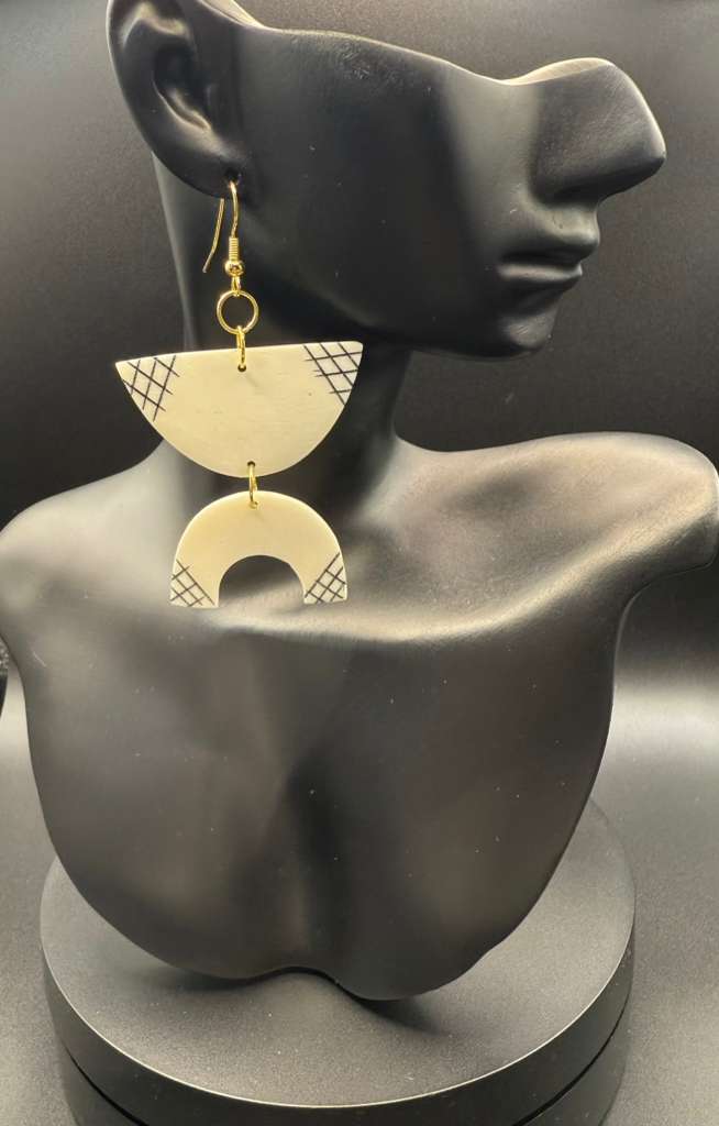 Handcrafted with brass, cowrie shells, horn, and natural bones, the Double Half Moon Nefertiti Fan Earring reflects the bold Afro-chic identity of ABOF Brand. Each pair is unique, blending natural African materials with powerful design for women who love statement pieces rooted in culture.
