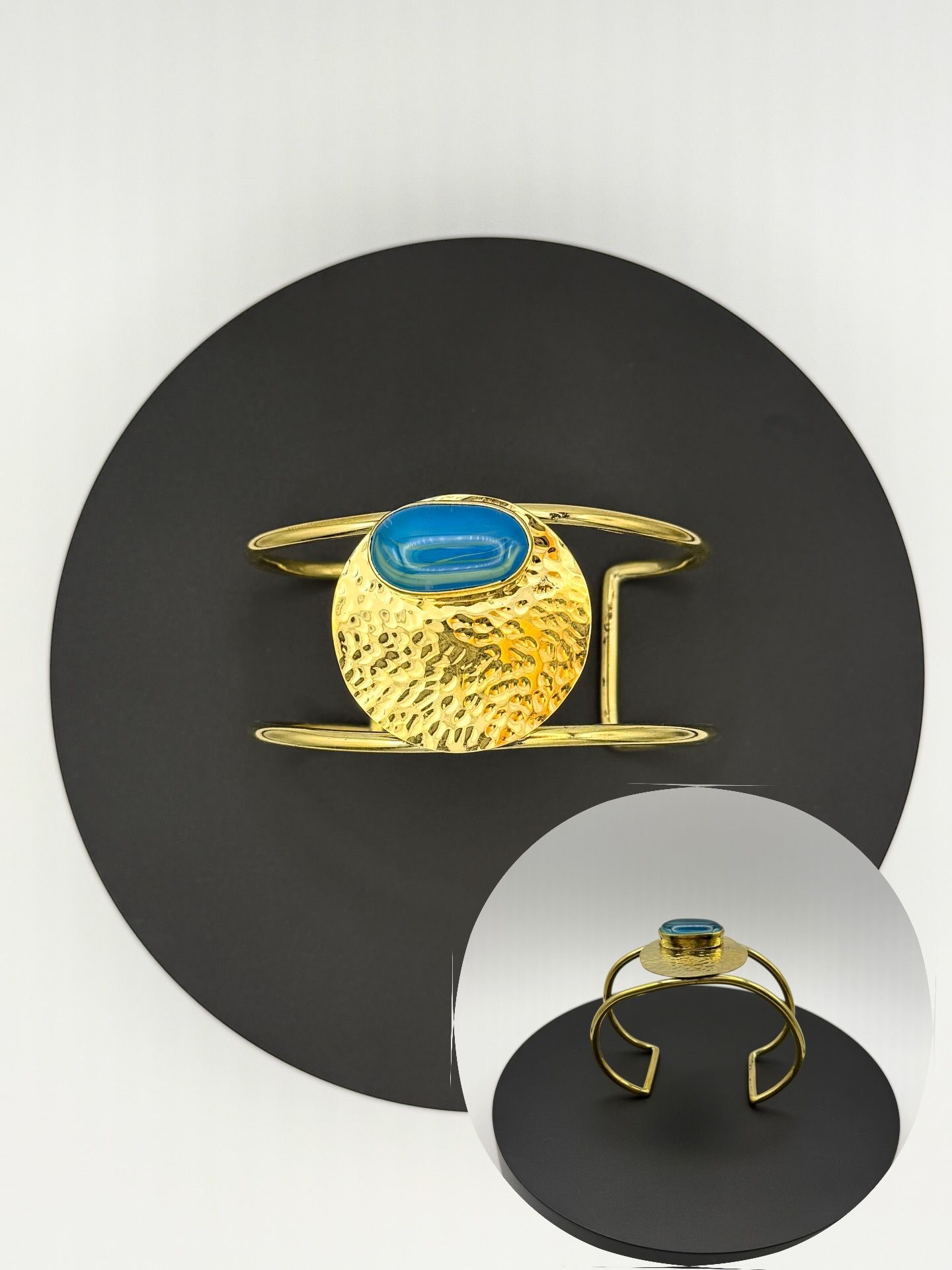 A striking blend of African heritage and modern elegance, the Ocean Solaris Double Bangle Bracelet is handcrafted from radiant brass and beautifully adorned with natural resin and luminous glass pearls. The double bangle design creates a bold yet graceful statement, reflecting the richness and artistry found in traditional African adornment.