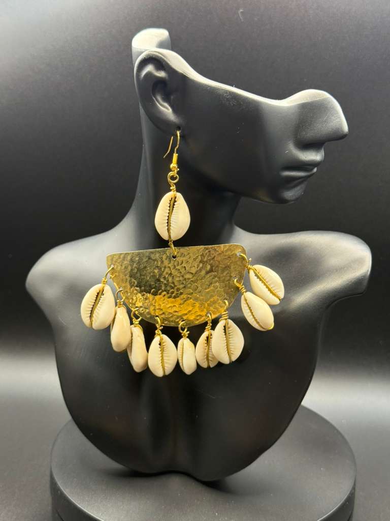 Handcrafted with brass, cowrie shells, horn, and natural bones, the Shel’Ries Coco – Cowrie Fringe Statement Earring reflects the bold Afro-chic identity of ABOF Brand. Each pair is unique, blending natural African materials with powerful design for women who love statement pieces rooted in culture.