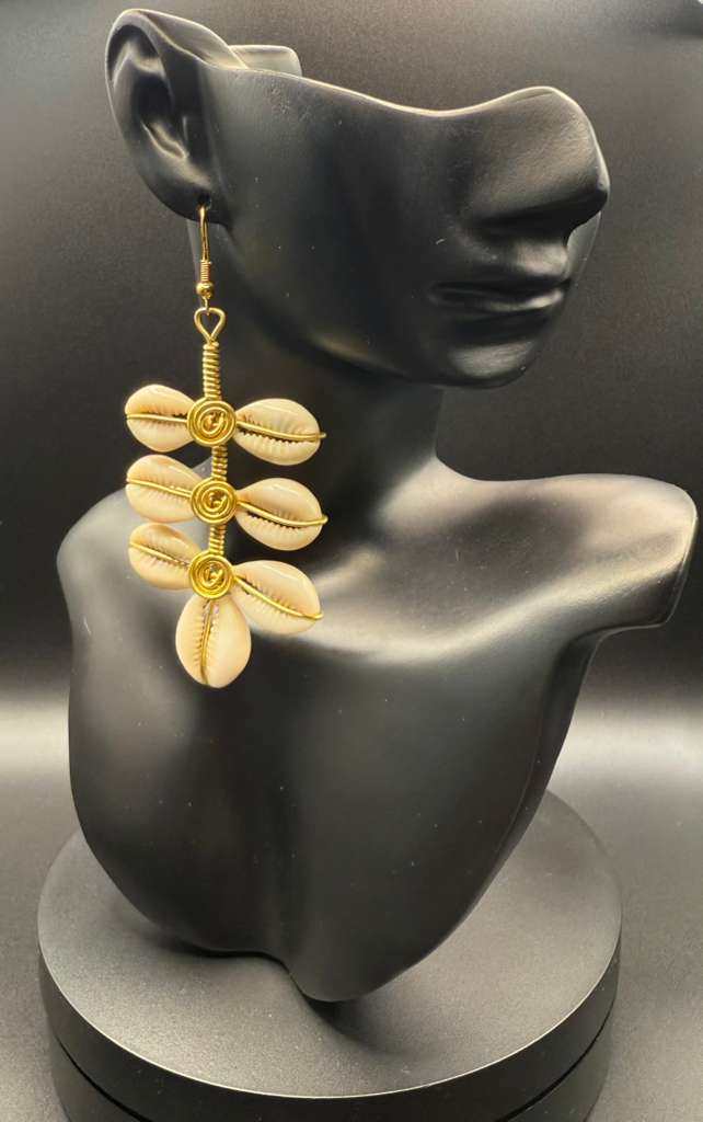 Handcrafted with brass, cowrie shells, horn, and natural bones, the Shel’Ries Coco – Stacked Cowrie Earring reflects the bold Afro-chic identity of ABOF Brand. Each pair is unique, blending natural African materials with powerful design for women who love statement pieces rooted in culture.
