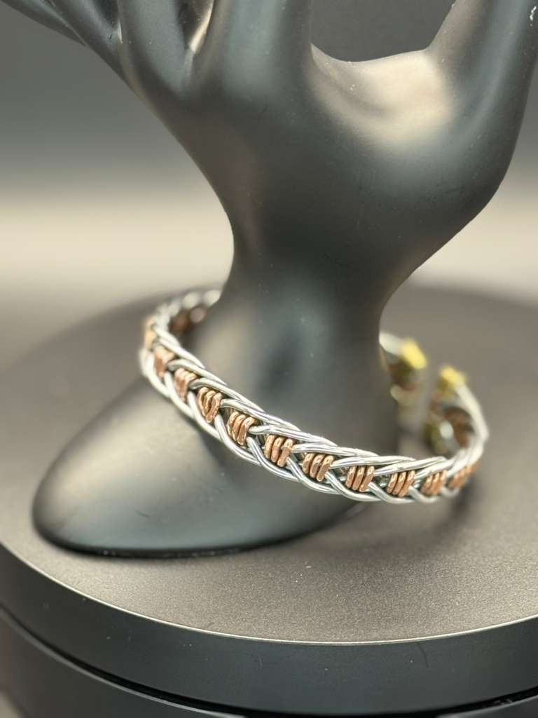 A bold celebration of craftsmanship and contemporary African design, the Silver Copper Braided Unisex Bracelet is handcrafted from brass, copper, silver, and other striking metals, intricately woven together to create texture, depth, and movement.