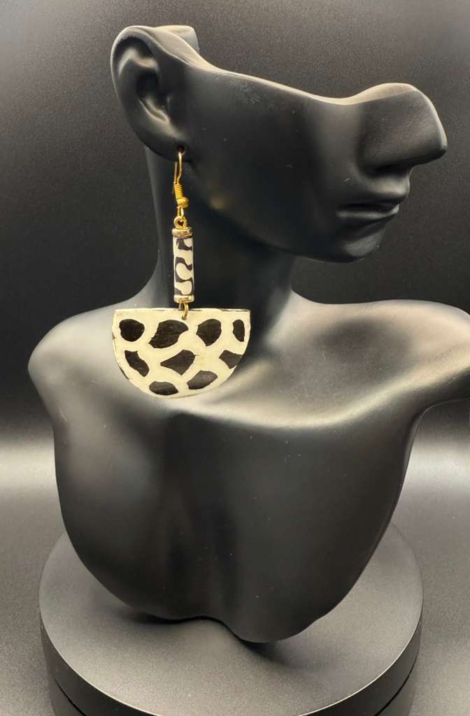 Handcrafted with brass, cowrie shells, horn, and natural bones, the Spotted Half Moon Nefertiti Fan Earring reflects the bold Afro-chic identity of ABOF Brand. Each pair is unique, blending natural African materials with powerful design for women who love statement pieces rooted in culture.
