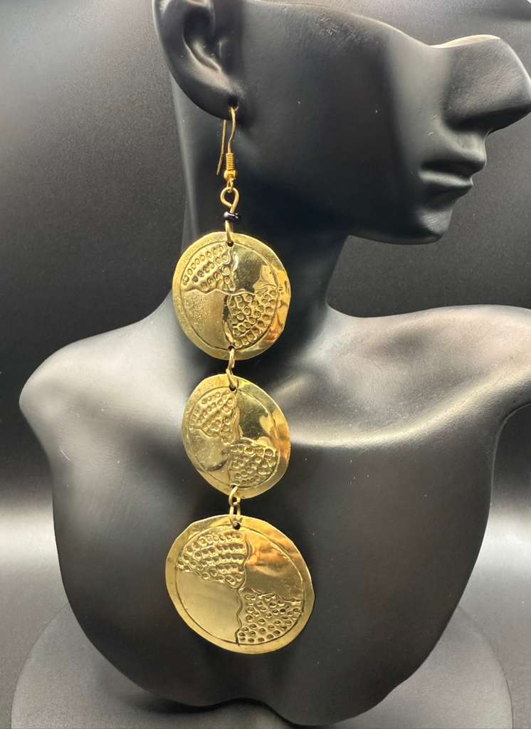 Handcrafted with brass, cowrie shells, horn, and natural bones, the Triple Disc Brass Signature Earring reflects the bold Afro-chic identity of ABOF Brand. Each pair is unique, blending natural African materials with powerful design for women who love statement pieces rooted in culture.
